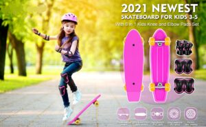 Cruiser Skateboards for Kids Beginners: 21.5'' Mini Cruiser Skateboards with 6 in 1 Protective Gear Set, Complete Skateboard for Girls and Boys 3-6
