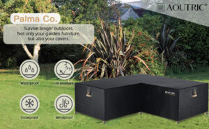 Aoutric by AWNIC Garden L Shape Sofa Cover Rattan Corner Garden Furniture Covers for Patio Waterproof Outdoor V Shape Dining Set Covers UV-resistant 215x215x85x71cm