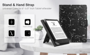 HoYiXi Universal Case Compatible with 6.8″ Kindle Paperwhite/6″ All-new Kindle 2022 & 2019/Kobo Clara HD/Kobo Clara 2E Leather Stand Cover for 6-6.8'' PocketBook/Tolino/Sony E-Book Reader, gree