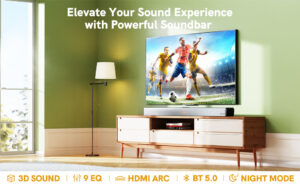 ULTIMEA Sound Bars for TV 60W, DSP/Bass+ Enhanced, 5 EQ Modes Soundbar for TV, Small Sound Bars for TV, HiFi Soundbar Works with HDMI, Optical, PC, TV, USB