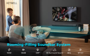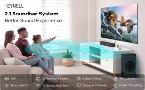 Heymell 2.1CH 160W Soundbar for TV With Subwoofer Driven by Digital Amplifer, Clear Strong Sound & Bass, No Background Noise,DSP 3D Surround Sound Bar,TV Soundbar HDMI ARC Optical