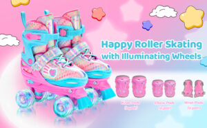 Sportneer Roller Skates Kids, Roller Skates with Protective Gear Set, Sizes Adjustable with 8 Light up Wheels, for Girls Boys Kids Youth Beginner Indoor & Outdoor Use(UK Size 12-4), Pink & Blue