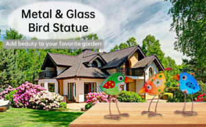 John’s Studio Outdoor Statue Metal Bird Decor Glass Garden Art Decorative for Patio Yard – Set of 3