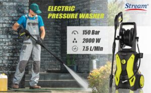 Electric Pressure Washer, 2000W 150Bar 450L/H Power Washer Jet Washer with Patio Cleaner Fix Brush,Turbo Nozzle Soap Dispenser Accessories,Pressure Washers for Patio and Ca