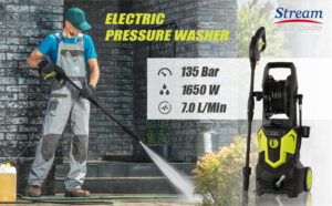 Stream Pressure Washer, 1650W 135Bar420L/H Portable Pressure Washer Jet Washer with Patio Cleaner, Power Pressure Washers with Snow Foam Water Tank Adjustable Nozzle for patio and Ca