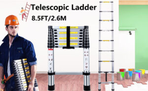 Telescopic Ladder 2.6M Multi-Purpose Folding Aluminium Telescoping Ladder Extendable Portable Loft Ladder Foldable Ladder with EN131 and CE Standard (8.5FT/2.6M)