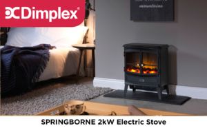 Dimplex Springborne Optiflame Electric Stove, Freestanding Matte Black Cast Iron Effect Electric Fire with Coal Fuel Bed, LED Flame Effect, 2kW Adjustable Fan Heater and Remote Control