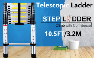 Nestling 10.5ft/3.2M Telescopic Ladder, Aluminium Loft Ladder Extendable, Max Load 150kg/330lb, Adjustable Step, for Decorating, Painting