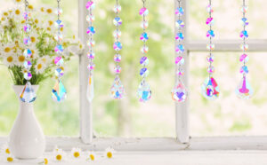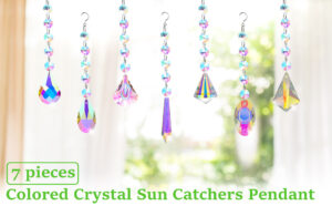 EEEKit 7 Pcs Crystal Suncatchers, Hanging Glass Prism Rainbow Maker Sun Catcher for Window, Colorful Pendant with 7 Shapes for Ornaments Home Garden Office Decoration Spring Gif