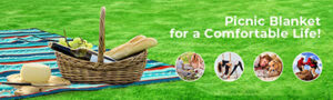 Large Picnic Blanket 200 x 200 cm, Waterproof Backing Picnic Blanket Outdoor Beach Mat with Carry Handle, 3 Layers Material, Fleece Heat, Beach Blanket for Camping, Picnic, Travel (Green Striped)