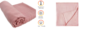 ANDOV Muslin Cloths for Baby Swaddle Wrap Newborn Blanket 0-3 Months Essentials 70% Bamboo 30% Cotton Ultra-Soft & Eco-Friendly GOTS Certified 100% Organic 120×120 cm and HEADBAND