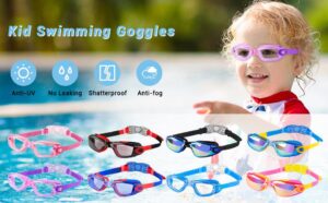 COOLOO Kids Swimming Goggles, 2 Packs Crystal Clear Swim Goggles for Kids, Children, Boys, Girls, and Teens Age 3-15, Anti-Fog, Waterproof, No Leaking