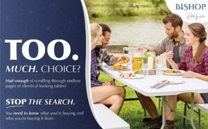 Bishop 6ft Folding Table Portable – British Foldable Table 250kg Max – Fold Away Table 8 People, Camping Tables That Fold Up – Fold Up Table Fits in Car, Picnic Table 1 Min Assembly