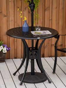 Outsunny 78cm Round Garden Dining Table Bistro Set with Parasol Hole Antique Cast Aluminium Outdoor Table, Black