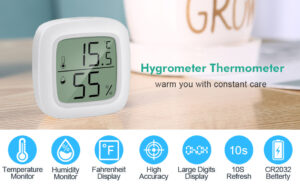 2-Pack Mini Hygrometer, TAKSHO Celsius Meter Digital LCD Monitor Indoor Room Round Humidity Temperature, 10 Seconds Refresh, for Humidors Home Greenhouse