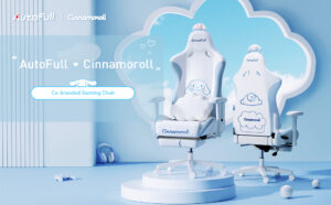 AutoFull Cinnamoroll Gaming Chair High Back Ergonomic Office Desk Computer Chair with Lumbar Support, Racing Style PU Leather Task Chair with Footrest, White & Blue