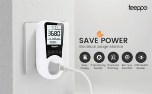 Power Meter Energy Monitor UK Plug, teeppo Watt Meter Backlight LCD Display Electricity Usage Monitor with 7 Monitoring Modes, Watt Volt Amp Power Consumption Meter Overload Warning UK Plugã2 Packsã