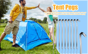 Tent Pegs – 10Pcs Tent Pegs Metal Heavy Duty Camping Pegs Rust Free Tent Hooks Ideal for Camping, Hiking, Traveling, Beach and Outdoo