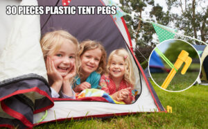 Plastic Tent Pegs, 30 PCS Camping Pegs, Heavy Duty Plastic Tent Nails, Durable Tent Peg for Fixing Camping Tent Awnings Rain Tarps Garden Weed Mat (Yellow)