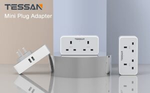 UK to European Plug Adapter with 3 USB Ports -TESSAN 2 Way Grounded Europe Travel Adapter, Double Plug Adaptor UK to EU Euro for Germany France Spain and More (Type E/F)