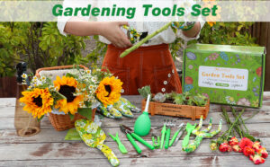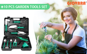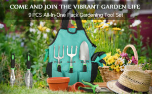Garden Tool Set, 9 Pieces Aluminium Garden Tools with Garden Bag, Gardening Gloves, Jerk, Gardening Shovel, Garden Gegali for Men Wome