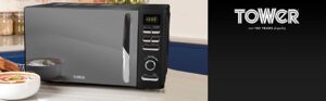 Tower T24019 Infinity Digital Solo Microwave with 6 Power Levels, 8 Auto Cook Options, 60 Minute Timer, Defrost Function, Stylish Mirrored Door, Aluminium, 800 W, 20 liters, Black