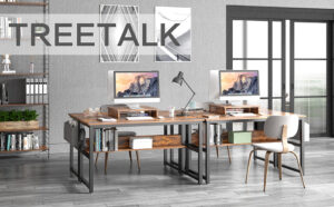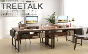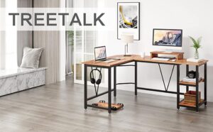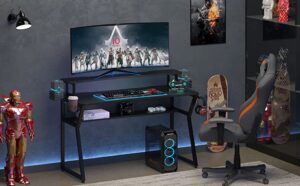 Computer Desk, Writing Desk with Storage Bag, 47in Computer PC Laptop Table with Bookshelf and Wood Monitor Stand Riser, Dining Gaming Table for Home Office (Brown)
