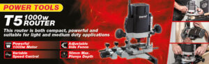 Powerful 1000W Soft Start Motor for medium duty applications with controllable startup. Lightweight router with 50mm plunge depth, ideal for hinge and lock faceplate recessing. Speed control dial for maximum control on different materials and cutter diameters. Adjustable twin rod parallel side-fence guide with integral micro-adjuster for straight edge work. Check Offer Price Weight: 4.77 kg Size: 1000 W, 240 V Dimensions: 18 x 30.3 x 27 cm; 4.77 Kilograms Model: T5EB Part: T5EB Colour: Black Pack Quantity: 1 Batteries Required: No Batteries Included: No Manufacture: Trend Colour: Black Quantity: 1 Size: 1000 W, 240 V