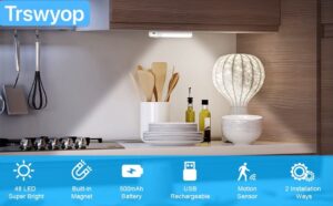 [4 Pack] Motion Sensor Light, 48 LED Super Bright Cupboard Night Light, USB Rechargeable Battery Powered Light, Removable Magnetic Strip Stick-on Wardrobe, Closet, Kitchen, Stairs, Garages etc