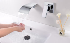 SHANFO Wall Mounted Bath Taps Waterfall Chrome 12.5cm Spout Brass Bath Filler Tap Wall Basin Tap