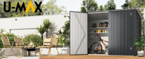 U-MAX 1.5×0.8m Garden Storage Shed, Bike Shed with Double Door and Opening Lid, Outdoor Storage Box for Bikes,Trash Cans, Garden Tools, Dark Grey