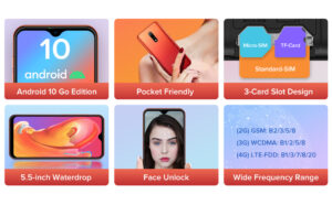 SIM-Free & Unlocked Mobile Phones, Ulefone Note 10, 5500mAh Battery, Android 11, 32GB Phone Storage, 2GB ROM, Three Card Slots, Octa-core, 4G Network, 6.52 inch Display, OTG, Fingerprint Face ID, Red