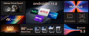 ULTIMEA Smart Projector 4K Decoding Android TV 11.0 with Netflix, Projector with Wifi and Bluetooth 5.3, Home Cinema, Outdoor Movie Projector with Dolby Audio, Gimbal Stand, 600 ANSI HDR+HLG, Nova C4