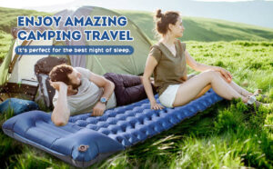 Self Inflating Camping Sleeping Pad, Widen & Thicken Camping Mat with Pillow, Lightweight Single Air Mattress Bed for Outdoor Backpacking Hiking Travel(Single, Navy Blue)