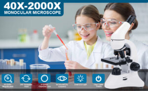 USCAMEL 40X-2000X Microscope for Adults Kids, Dual LED Illumination Metal Body Optical Lens with Microscope Slides Phone Adapter for School Home Teaching