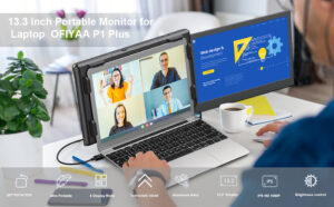 13.3″ Portable Monitor for Laptops | FHD 1080P IPS Attachable Display Screen with Kickstand | USB Power Plug and Play | Compatible with 13.3-17″ Mac Chrome Windows Laptops (Black)
