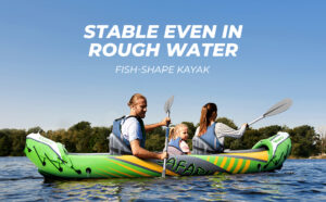 Vanku Inflatable Kayak 2 Person with Sun Canopy, 2 Removable Seats, 2 Paddles, Air Pump, Cushion, Canoe for Lake, Rivers, Streams
