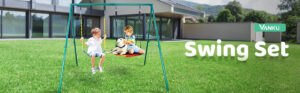 Vanku Double Swing Set with 1 Nest Swing and 1 Soft EVA Board Swing Seat, Heavy-duty Metal Swing Frame Support 200KG, Swing Stand for Kids, Adults, Backyard