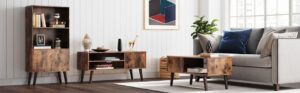 VASAGLE TV Stand, TV Table for TV up to 70 Inches, with Shelves, Steel Frame, Living Room, Bedroom Furniture, Greige and Black LTV095B02