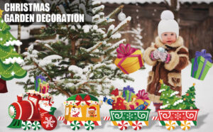 VEYLIN Christmas Garden Decorations, 4 Pack Train Yard Sign Stakes Large Waterproof Lawn Signs for Xmas Outdoor Deco
