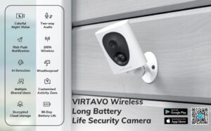irtavo 1080P HD Wireless Security Camera, Outdoor Starlight Colorful Night Vision Video Cam Works with Alexa, AI Detection, Long Battery Life WIFI Camera, 2-Way Talk Surveillance Camera, SD/Cloud