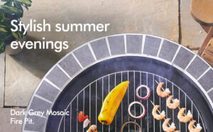 VonHaus Fire Pit Coffee Table – Mosaic Firepit with BBQ Grill Function, Table Feature & Spark Guard – Steel Material – Outdoor, Garden, Patio Heater/Burner for Wood & Charcoal – Grey
