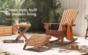 VonHaus Rocking Adirondack Chairs – Outdoor Stylish & Durable Garden Furniture, Natural Acacia Hardwood, Slatted, Panelled Relaxing Sun Lounger Seat with Oiled Finish – (Set of 1, 1)