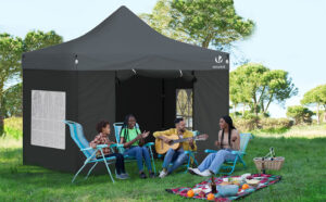 VOUNOT 3x3m Heavy Duty Gazebo with 4 Sides, Pop up Gazebo Fully Waterproof Party Tent with Roller Bag and Leg Weights, Grey