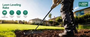 Warmiehomy Garden Rake Lawn Leveling Rake 76*25 CM, Leaf Rake For Gardening With 213CM Adjustable Handle, Heavy Duty Effort Saving Lawn Leveling Tool Yard Leveler For Soil, Grass, Golf Field