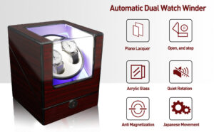 Fingerprint Watch Winder, DUKWIN Automatic Watch Boxfor 2 Watches with LCD Remote Control Led Light Quiet JapMotor,Powered by AC Adapter(British Plug)