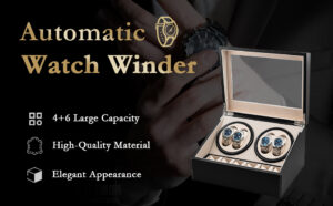 Feibrand Automatic Watch Winder Box Rotating Watch Case PU Leather Self-Winding Mechanical 4+6 Watch Storage Display with Quiet Moto