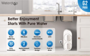 Waterdrop Reverse Osmosis Water Filtration System, Tankless, 1514 Liters Per Day Fast Flow, Reduces TDS and Water Hardness, 1:1 Pure to Drain, FCC Listed, Brushed Nickel Based Faucet, WD-G2-W