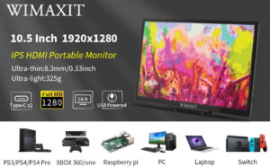WIMAXIT 10.5Inch Portable Monitor 1920x1280P IPS FHD 100% SRGB Screen Display with USB-C/HDMI/VESA, Eye Care Gaming Monitor Type-C Monitor for Laptop,Cellphones,PC