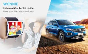 WONNIE Car Headrest Mount Holder, Tablet Holder for Kids in Back Seats, Anti-Slip Strap and Holding Net,Angle-Adjustable/ Fits All 7 Inch to 10.5 Inch Tablets